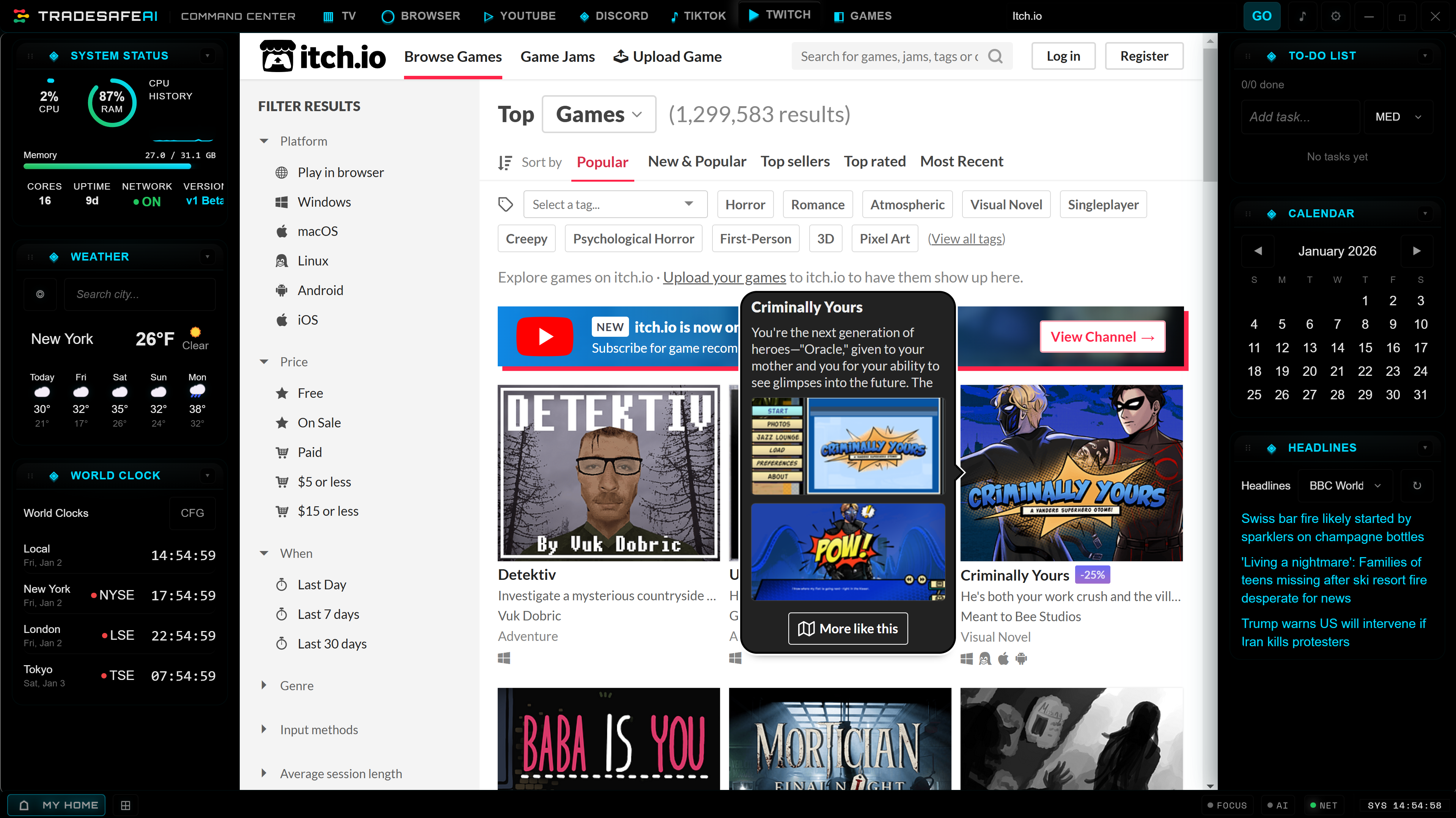 - ๐ฎ Gamer โ itch.io + Discord + Twitch + game widgets